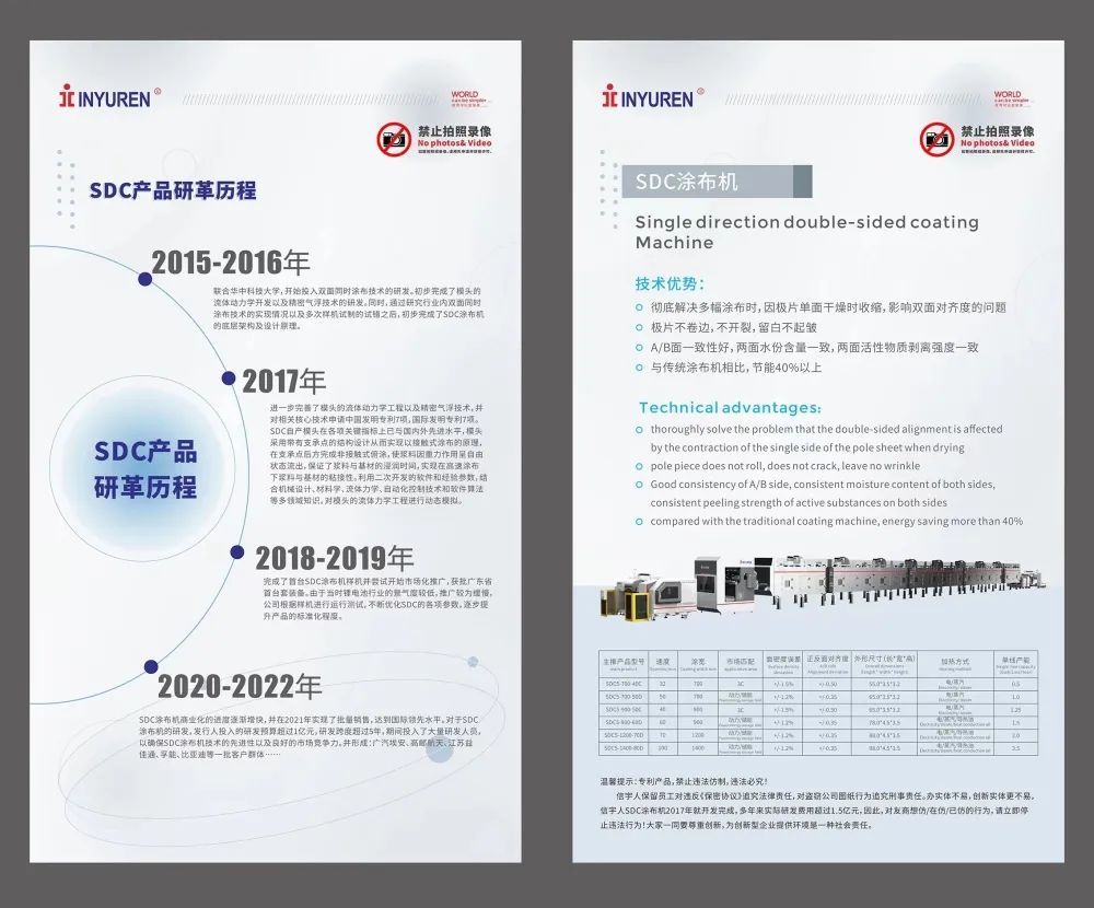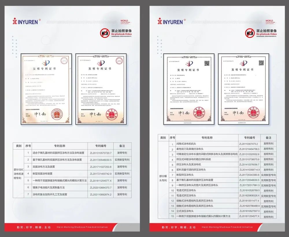 From 2015 to 2021, after 6 years of obtaining numerous invention patents, Xinyuren achieved the goal of becoming something from scratch. After years of in-depth research and development, the actual R&D cost of Single direction double-sided coating Machine exceeded 100 million yuan, and finally produced highly innovative domestic high-end equipment, ushering in a new era of lithium battery coating equipment development.
